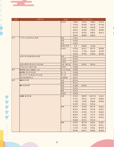 科目 比赛项目 成就 姓名(华文)