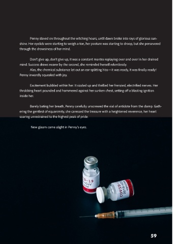 Penny hadn’t slept for days, as she had recently been devoting her entire existence to a huge cause, an ex- Barely bating her breath, Penny carefully unscrewed the vial of antidote from the clamp. Gath-