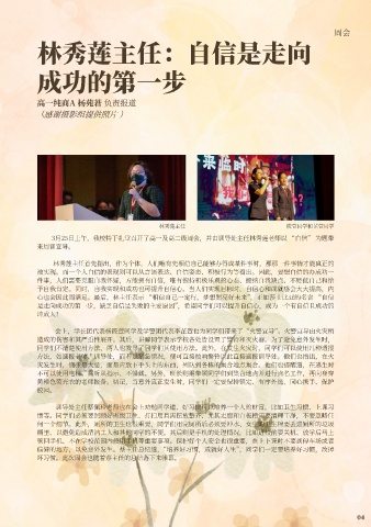 ⼼也会因此而满⾜。最后,林主任表⽰ “相信⾃⼰⼀定⾏,梦想照亮好未来”,正如莎⼠⽐亚的名⾔ “⾃信