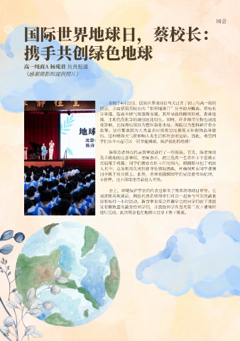 周会,并由蔡莉莉校⻓的“世界地球⽇”分享拉开帷幕。蔡校⻓