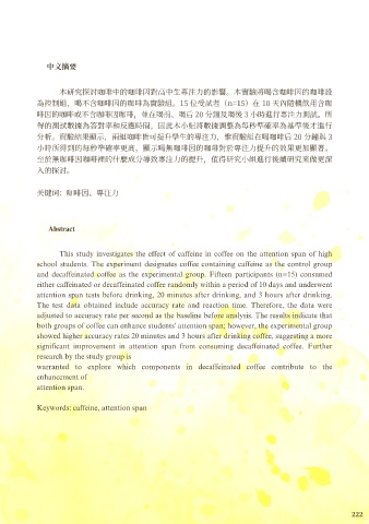 分析。實驗結果顯⽰,兩組咖啡皆可提升學⽣的專注⼒,惟實驗組在喝咖啡后 20 分鐘與 3