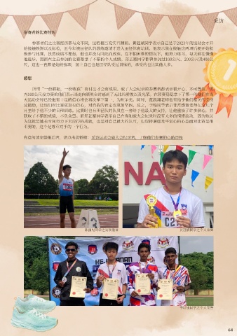 地进步。因而在之后参加的⽐赛都拿了不错的个⼈成绩。郑芷璇同学都曾参加过100公尺、200公尺及400公