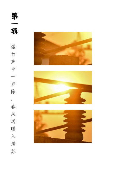第 第 一 一 辑 辑 爆 爆 竹 竹 声 声 中 中 一 一 岁 岁 除 除 , , 春 春 风 风 送 送 暖 暖 时间悄声无息地掠过你我,好比每天的太阳 入 入 东升又西落。我们又来到了日出之时,又看 到清晨里满树繁花、万物并作。它们说日出 屠 屠 即新生,这是新年的开启。 苏 苏