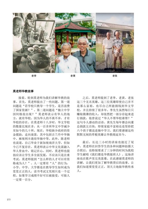 接着,轮到莫老师为我们讲解华教的故 之后,莫老师提到了老李、老黄、老张