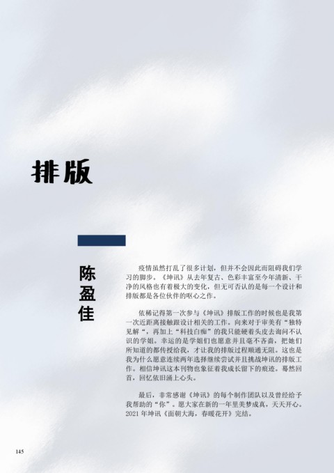 佳 依稀记得第一次参与《坤讯》排版工作的时候也是我第 偲