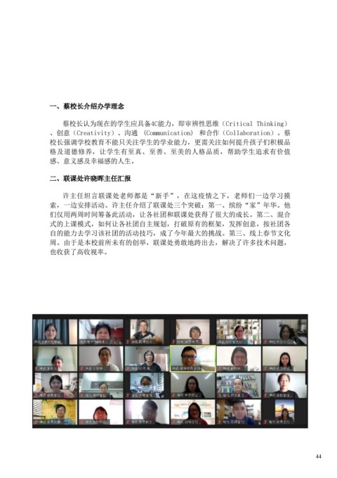 校长室主任 —— 张秀华老师担任。参与此次交流会的包括 二、联课处许晓晖主任汇报