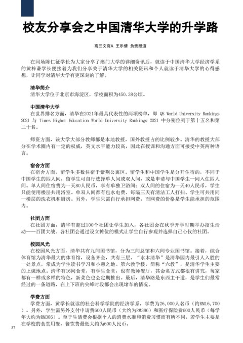 的黄梓谦学长便接着为我们分享关于清华大学的相关资讯和个人就读于清华大学的心得感