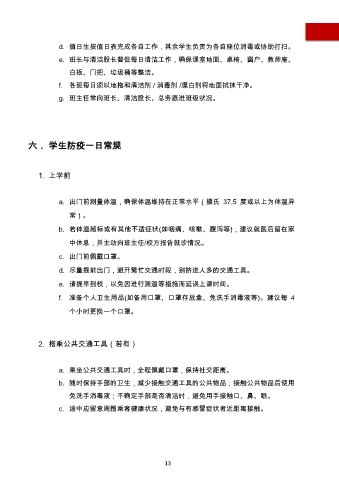 d. 值日生按值日表完成各自工作,其余学生负责为各自座位消毒或协助打扫。
