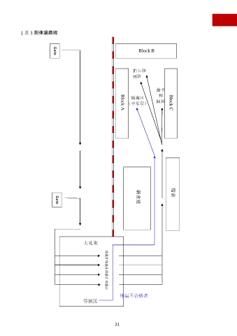(三)测体温路线 Block CBlock B Block A拍卡和 回班 Gate A 拍卡 隔离区 和 (音乐室) 回班 Gate 宿舍 B 新食堂 大礼堂 体温计体温计体温计 体温计 体温不合格者 等候区 21