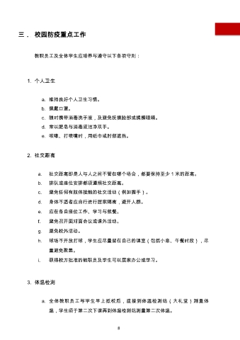 e. 咳嗽、打喷嚏时,用纸巾或肘部遮挡。