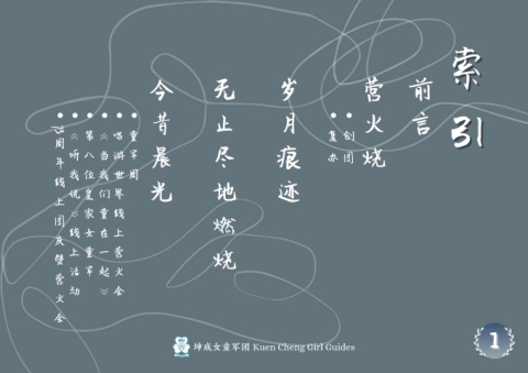 索 索 今 无 岁 营 前 引 昔 止 月 火 言 引 7 ︽ 第 ︽ 唱 童 复 创 3 周 听 八 当 游 军 晨 尽 痕 办 团 烧 年 我 位 我 世 周 线 说 皇 们 界 光 地 迹 上 ︾ 家 童 线 团 燃 线 女 在 上 庆 上 童 一 营 暨 烧 活 军 起 火 营 动 ︾ 会 火 会 1 1 坤 成 女 童 军 团 坤成女童军团 Kuen Cheng Girl Guides