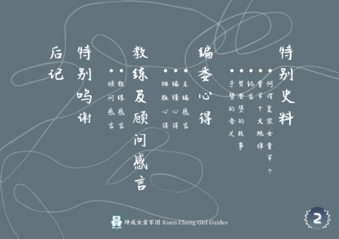 后 特 教 编 特 记 别 练 委 别 顾 教 排 编 主 手 贝 铭 童 何 鸣 问 练 及 版 辑 编 心 势 登 言 军 谓 史 的 堡 十 皇 感 感 心 心 感 谢 顾 得 含 的 大 家 料 言 言 得 得 言 义 故 规 女 问 事 律 童 感 军 ? 言 2 2 坤成女童军团 Kuen Cheng Girl Guides
