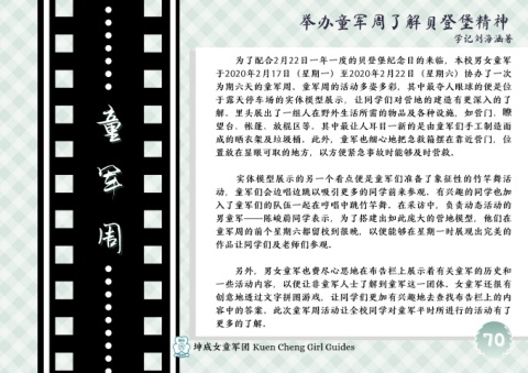 为了配合2月22日一年一度的贝登堡纪念日的来临,本校男女童军