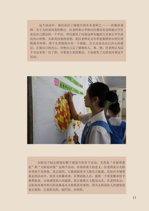 还能让这份情触及每个人心中最柔软的那一面。 林睿盈 这个活动中,我们采访了感恩月的负责老师之一——区佩欣老