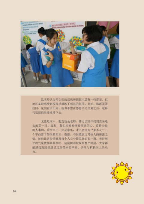 校园,氛围有所不同。她也希望在感恩活动结束之后,这种
