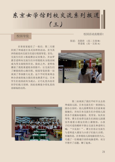 表演。本校学生和东京女学馆的学生的共 冲的就是向交流生们进行校园导览。首先,