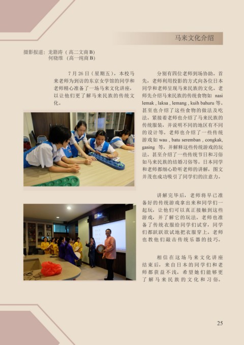 东京女学馆 马来文化介绍