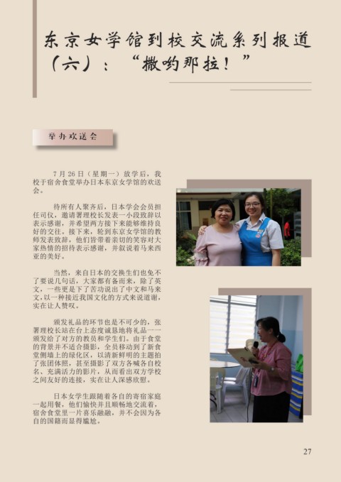 纯商 A、高一纯商 B 以及高一文商 A。负 校于宿舍食堂举办日本东京女学馆的欢送