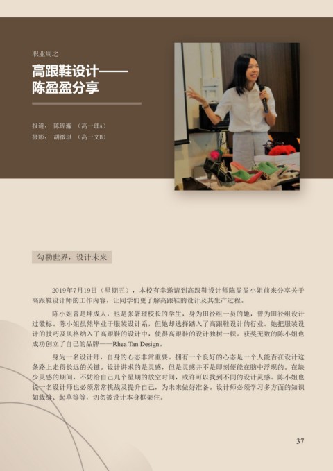 情。在这工作坊闭幕前,大家来张大合照以作为纪念。 成功创立了自己的品牌——Rhea Tan Design。
