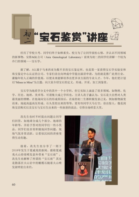 的新事物,安排AGL公司(Asia Gemological Laboratory)前来为初二的同学们讲解一个较为