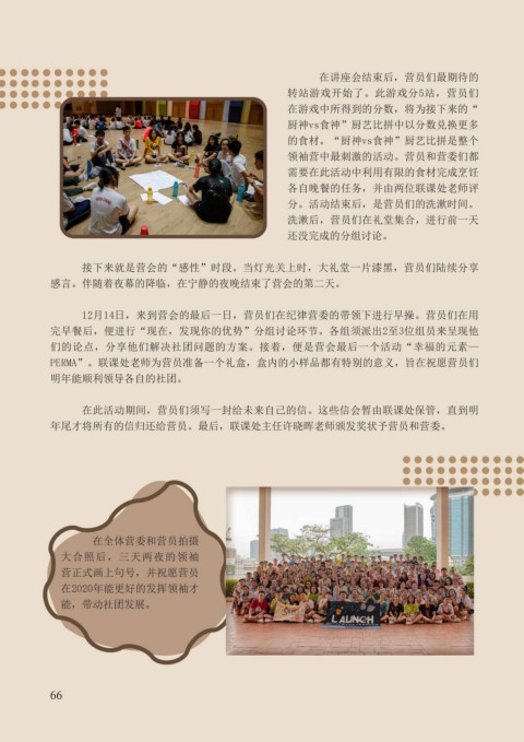 们的论点,分享他们解决社团问题的方案。接着,便是营会最后一个活动“幸福的元素—