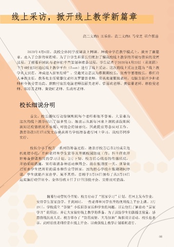 过程,了解幕后团队与老师们辛苦策划和准备过程,学生记者于2020年4月23日(星期四)