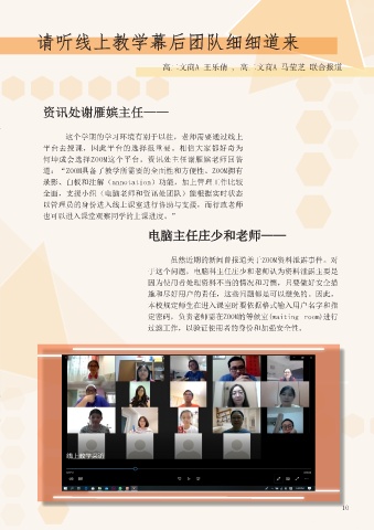 组,随时支援有需要的老师。接着,校方召开全体老师会议,以让老师对于这次的线上教 资讯处谢雁嫔主任——
