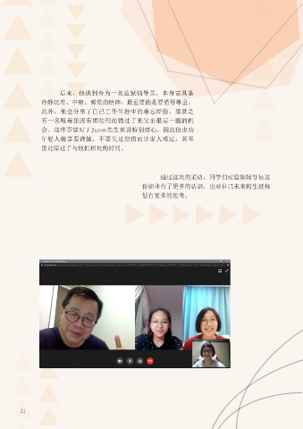 万花筒”的采访活动。高三学生会分成几个组别,对感兴趣行业的在职人士进行访问。基于
