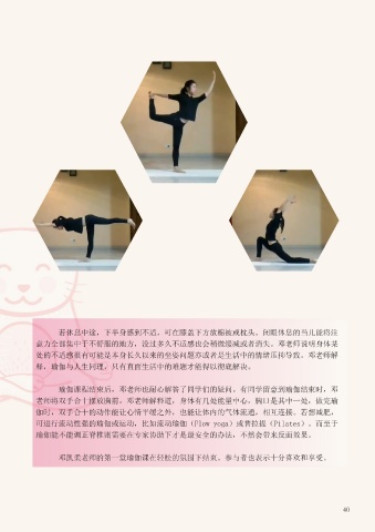 老师细心地讲解每个动作的步骤,并且说明这些瑜伽动作会为身体的哪些部位带来影响。上 处的不适感很有可能是本身长久以来的坐姿问题亦或者是生活中的情绪压抑导致。邓老师解