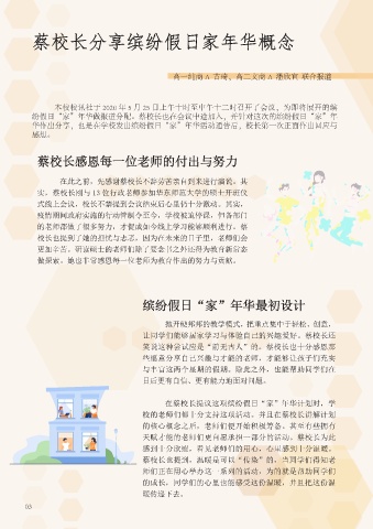 笑说这种尝试应是“前无古人”的。蔡校长也十分感恩那 做思考和探索的。而学校能做的,就是“见缝插针”,利用假期没有上正课的时间,