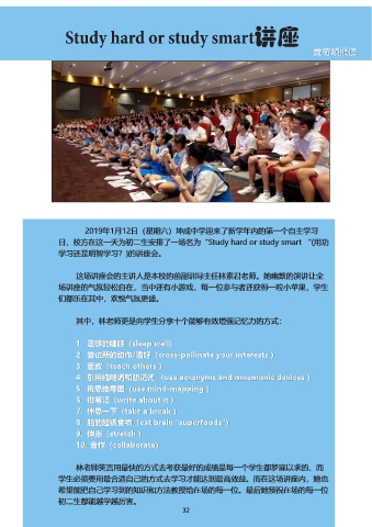 日,校方在这一天为初二生安排了一场名为“Study hard or study smart “(用功