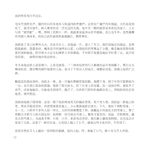 我用食指在雪人上戳出一双凹陷的眼睛,望向大海。呼。我喘了口气,蹲下身与雪人并肩。