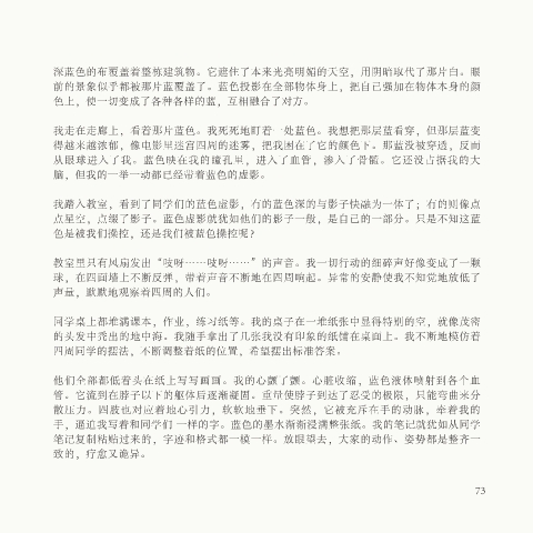 手,逼迫我写着和同学们 一样的字。蓝色的墨水渐渐浸满整张纸。我的笔记就犹如从同学