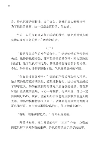 “我觉得深棕色的发色适合你。”妈妈愉悦的声音突然