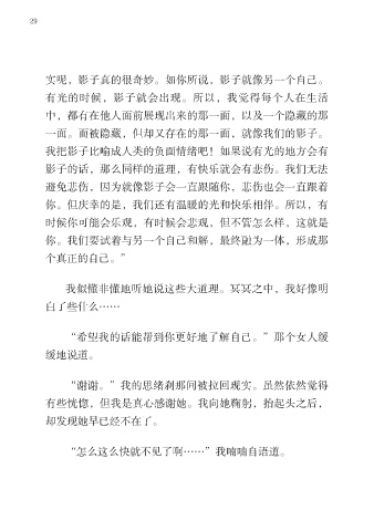 实呢,影子真的很奇妙。如你所说,影子就像另一个自己。 我心想,也许我真的应该像她所说的一样,试着接受另
