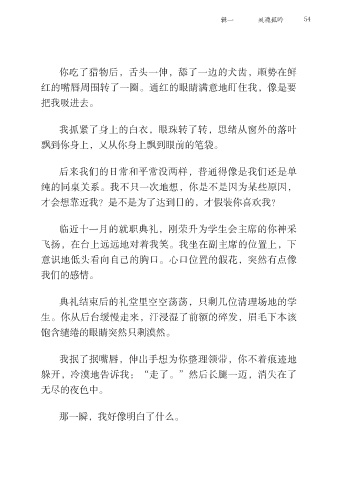 你到底还是夺走了我的大半时光。 你吃了猎物后,舌头一伸,舔了一边的犬齿,顺势在鲜