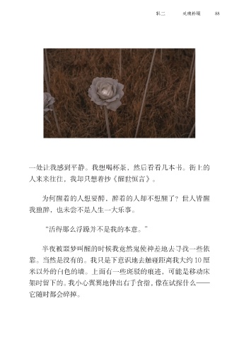 一整个夜晚,我只能听见耳机里的声音:“活着。活着。” 一处让我感到平静。我想喝杯茶,然后看看几本书。街上的
