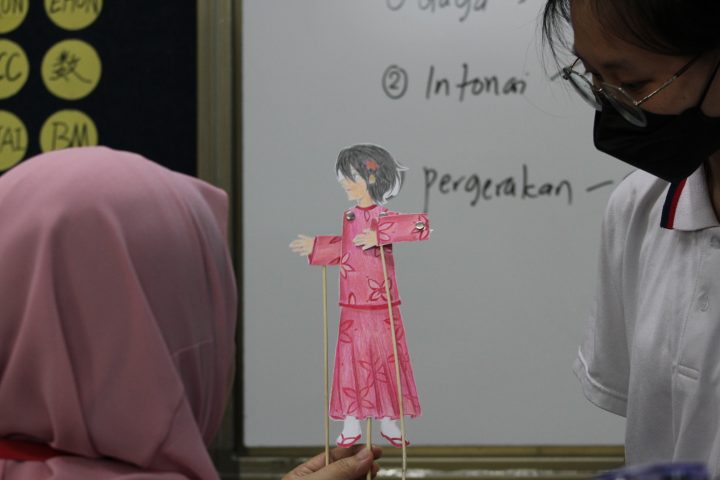 不仅如此,负责调整皮影角色的同学也会跟着故事情节和该角色的情绪变化调整角色动作。故事内容设计得有趣,呈现的同学们互动性高,使呈现的故事情节十分生动。之后,老师都会针对呈现内容提出相关问题好让同学们更能理解道德价值观,借此锻炼同学们的口语表达能力。