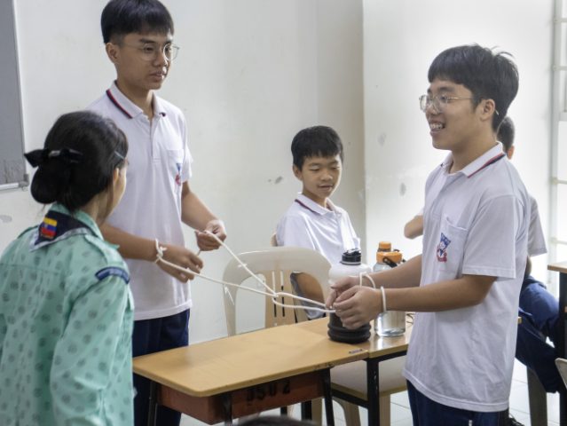 随后,学生们尝试将绳结技巧运用于逃脱术挑战,在限定时间内通过观察绳结结构、冷静思考解法,并与队友相互配合,设法解开复杂的绳结、完成脱困任务。面对挑战,学生们不断尝试不同方法,即使遇到困难也不轻易放弃,现场气氛既紧张又充满欢笑声。通过实践体验,学生不仅提升了解决问题的能力,也在合作过程中增进彼此之间的默契与信任,使活动更具意义与教育价值。