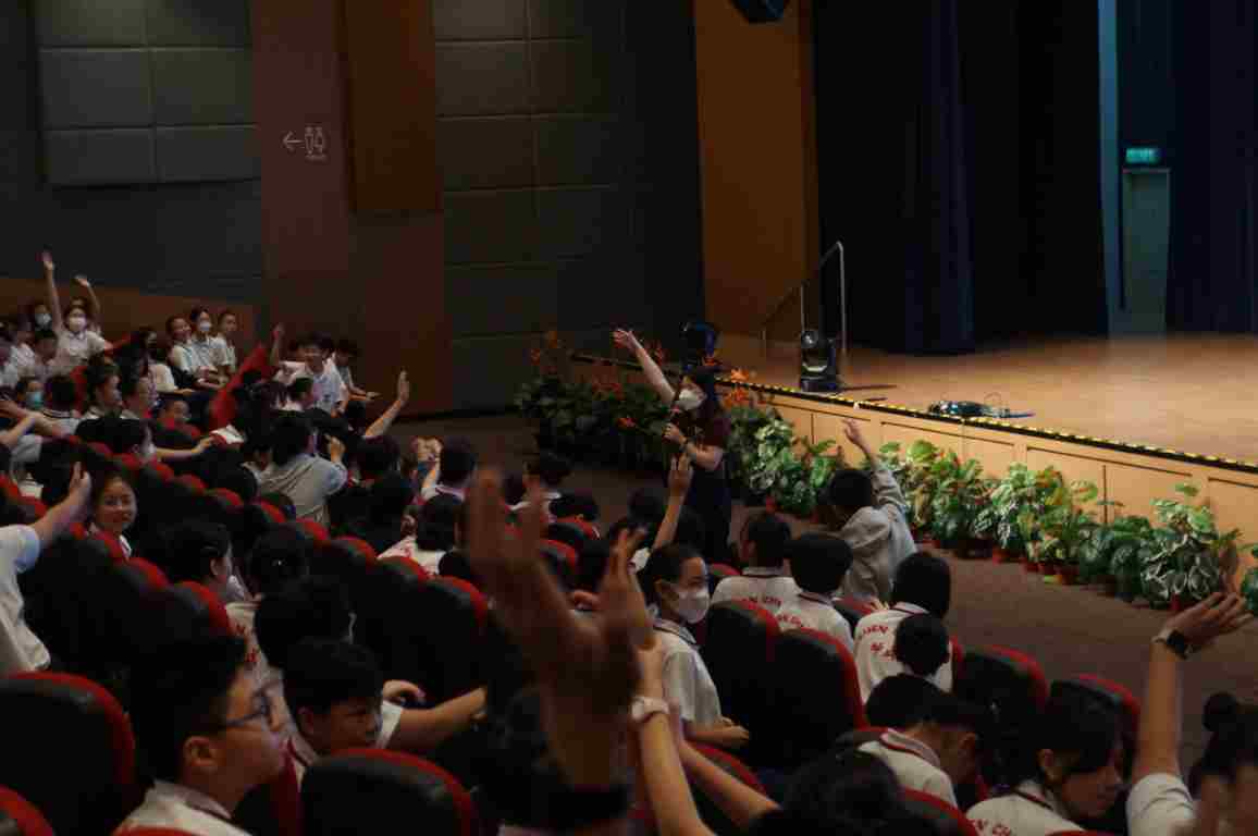 接下来就到了问答环节。高副校长与联课处主任林美湘老师根据说明会所讲解的内容向初一同学们提问。同学们反应热烈,纷纷踊跃举手作答,现场气氛活泼融洽。凡是答对问题的同学皆可获得巧克力作为奖励,进一步激发了同学们的参与热情。