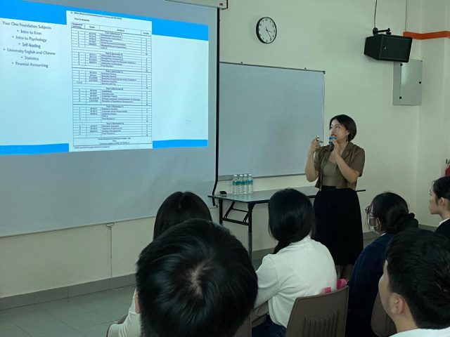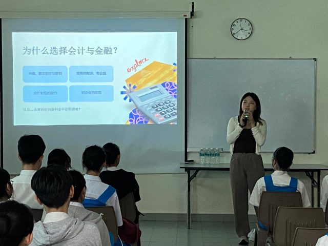 为助力坤成学子获取前沿升学资讯,2025年8月5日下午3时15分至4时30分,本校辅导处于MML 2成功举办“会计与金融系校友分享会”。活动特邀三位分别就读于香港理工大学、苏格兰格拉斯哥大学及新加坡南洋理工大学的校友返校分享,为同学们带来一场内容丰富、视角多元的升学指引。