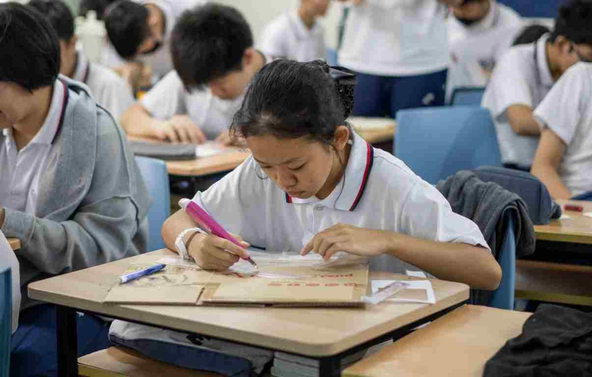 在活动过程中,指导的同学们先带领大家在卡片的上方绘制指定的方格,并将方格剪下,再利用透明塑料袋或透明包书纸粘贴在空出的部分,形成一个可放置素材的小窗口。随后,他们提供了与音乐相关的素材,供同学们粘贴在方格或卡片上。更特别的是,每位同学还获得了一枚来自“ Spotify” 随机歌曲的二维码,贴在卡片上后,扫码即可聆听随机专属旋律,为作品增添了独特的互动感。