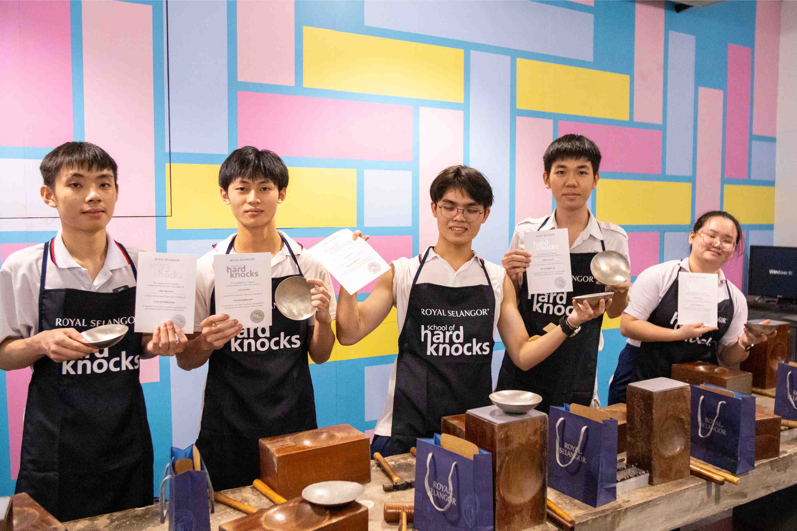 接着,同学们到McDonald’s享用午餐。用餐完毕后,同学们便出发前往本次外出之旅的最后一站——皇家雪兰莪(Royal Selangor)。在导览人员的介绍下,同学们了解到了这家全球最大的锡镴生产公司的历史和由来,并有幸一睹其精美的工艺品,其中包括来自上个世纪的锡制品。随后,部分同学还参与了工作坊,动手制作一个属于自己的锡碗,也亲身体验产品背后的工匠们的辛勤。
