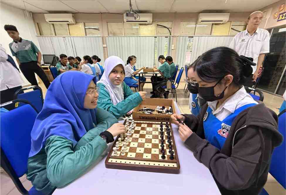 在盲人西洋棋体验坊中,两校学生以指尖为眼、以智慧为桥,在计时任务的协作中悄然建立起默契。特制的凸点棋盘取代了视觉的依赖,每一枚棋子仿佛被赋予生命,在轻触与推移间传递着思考的温度。我校学生不仅对棋盘的巧思设计赞叹不已,也在一次次合作中进一步理解视障朋友的坚韧与适应力。现场,许多同学原本并不熟悉西洋棋规则。文良港特殊教育国民中学的老师便临时设计了一个充满趣味与体验的环节,他们在讲解棋盘特性后,请大家戴上眼罩,从混合的多副棋子中,凭触觉抢先找出指定颜色的棋子。一时间,现场气氛热烈,欢声不断,大家在黑暗中摸索、辨认,不仅拉近了彼此距离,更真切体会到视障伙伴在日常中展现的敏锐与适应力。