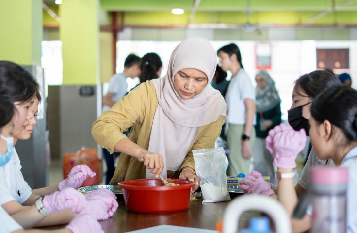 On the scorching day of 28 February 2026, the Academic Department is holding the Onde-Onde and Cecodok Pisang Making workshop in the school’s new cafeteria to celebrate the upcoming Hari Raya Aidilfitri in early March. There were a total of 60 students partaking in the event, limited to Senior One students only, in which they were guided by experienced Malay teachers in preparing these dishes.