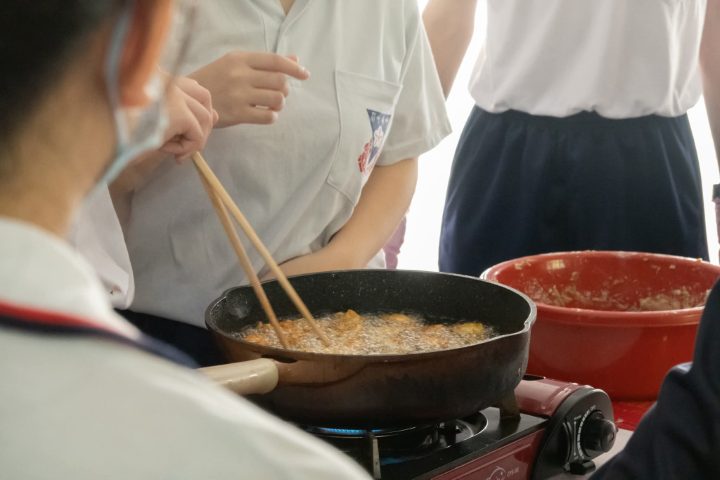 At 11.00 in the morning, students were ushered to the boiling and frying station, and the cooking process of these two dishes began.