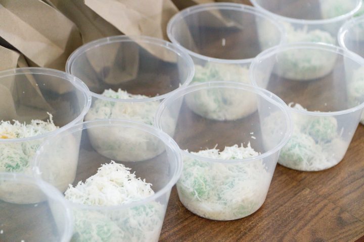 (Photo 3: Students’ handcrafted Onde-onde and Cekodok Pisang, neatly arranged in a tidy row)